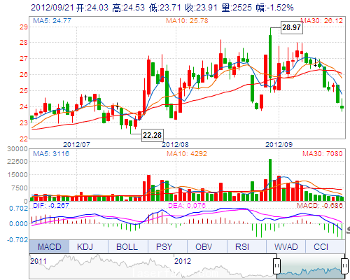 今 開: 24.03 成交量: 2525手 振 幅: 3.38% 最 高: 24.53 成交額: 609.90萬 換手率: 2.41% 最 低: 23.71 總市值: 8.37億 市凈率: 2.95 昨 收: 24.28 流通市值...
