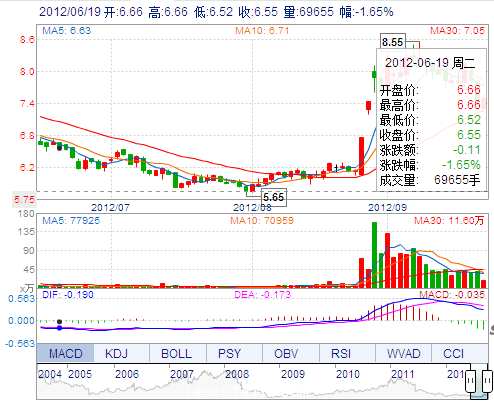 今 開: 7.30 成交量: 201994手 振 幅: 4.76% 最 高: 7.57 成交額: 15032.69萬 換手率: 2.14% 最 低: 7.22 總市值: 78.23億 市凈率: 2.78 昨 收: 7.36 流通市...