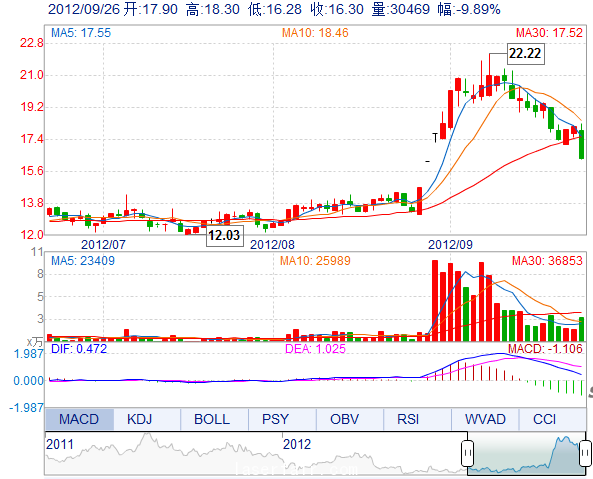 今 開: 17.90 成交量: 30468手 振 幅: 11.17% 最 高: 18.30 成交額: 5117.06萬 換手率: 9.15% 最 低: 16.28 總市值: 10.92億 市凈率: 3.51 昨 收: 18.09 流通...