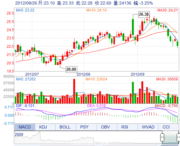 今 開(kāi): 23.10 成交量: 24136手 振 幅: 4.49% 最 高: 23.33 成交額: 5476.20萬(wàn) 換手率: 1.32% 最 低: 22.28 總市值: 67.27億 市凈率: 5.29 昨 收: 23.36 流通...