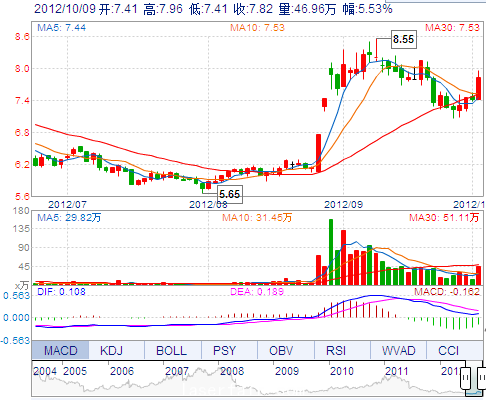 | 最 高: | 7.96 | 成交額: | 36164.96萬(wàn) | 換手率: | 4.96% |