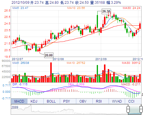 今 開: 23.74 成交量: 35167手 振 幅: 4.47% 最 高: 24.80 成交額: 8593.67萬 換手率: 1.92% 最 低: 23.74 總市值: 72.93億 市凈率: 5.74 昨 收: 23.72 流通...
