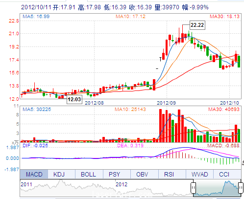 今 開: 17.91 成交量: 39969手 振 幅: 8.73% 最 高: 17.98 成交額: 6811.66萬 換手率: 12.00% 最 低: 16.39 總市值: 10.98億 市凈率: 3.52 昨 收: 18.21 流通...