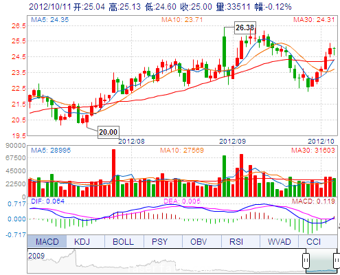 今 開(kāi): 25.04 成交量: 33510手 振 幅: 2.12% 最 高: 25.13 成交額: 8340.69萬(wàn) 換手率: 1.83% 最 低: 24.60 總市值: 74.42億 市凈率: 5.85 昨 收: 25.03 流通...
