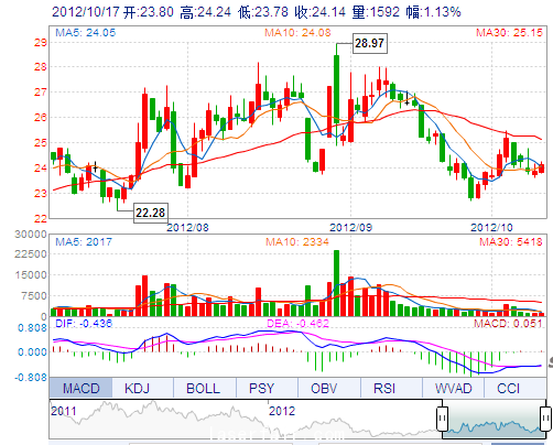 | 今 開: | 23.80 | 成交量: | 1591手 | 振 幅: | 1.93% |