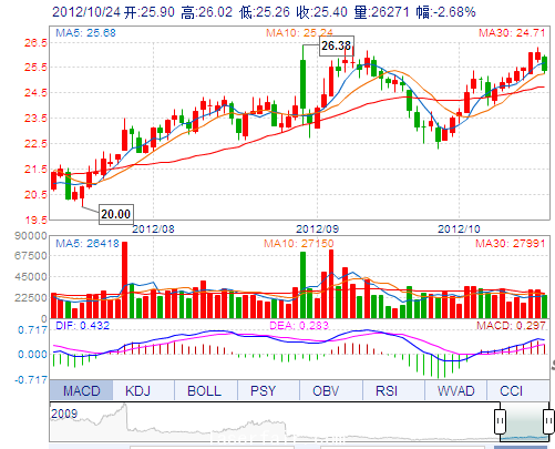 | 今 開: | 25.90 | 成交量: | 26270手 | 振 幅: | 2.91% |
