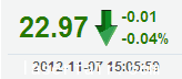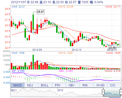 | 今 開(kāi): | 22.98 | 成交量: | 1205手 | 振 幅: | 2.35% |