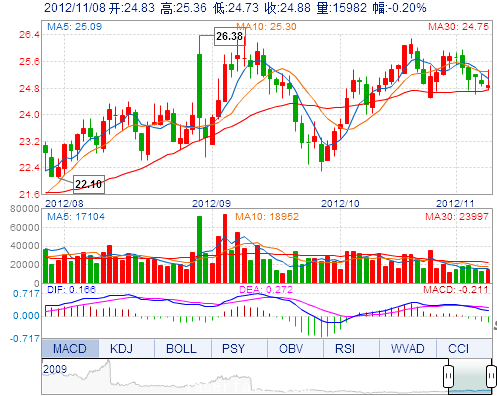 今 開: 24.83 成交量: 15982手 振 幅: 2.53% 最 高: 25.36 成交額: 4011.08萬 換手率: 0.85% 最 低: 24.73 總市值: 74.06億 市凈率: 5.68 昨 收: 24.93 流通...