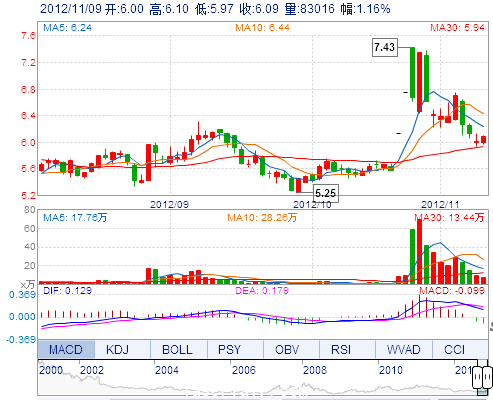今 開: 6.00 成交量: 83016手 振 幅: 2.16% 最 高: 6.10 成交額: 5019.55萬 換手率: 1.90% 最 低: 5.97 總市值: 26.60億 市凈率: 1.98 昨 收: 6.02 流通市值...