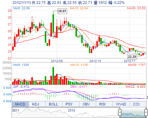 | 今 開: | 22.75 | 成交量: | 1911手 | 振 幅: | 1.67% |