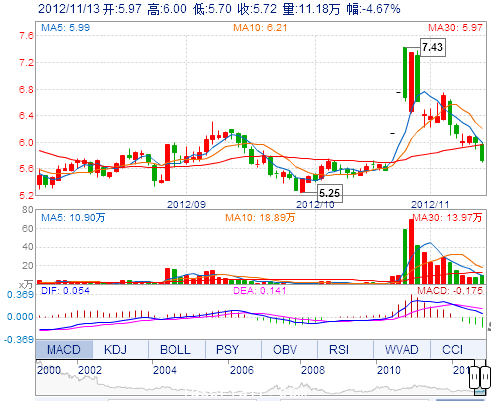 | 今 開(kāi): | 5.97 | 成交量: | 111809手 | 振 幅: | 5.00% |
