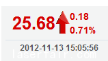 | 今 開(kāi): | 25.48 | 成交量: | 28143手 | 振 幅: | 1.84% |