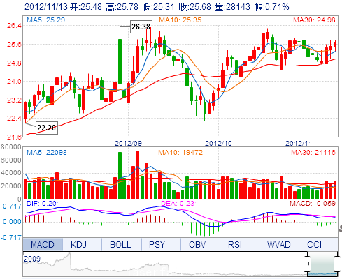今 開(kāi): 25.48 成交量: 28143手 振 幅: 1.84% 最 高: 25.78 成交額: 7204.66萬(wàn) 換手率: 1.50% 最 低: 25.31 總市值: 76.44億 市凈率: 5.86 昨 收: 25.50 流通...