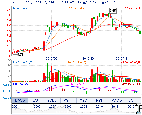 昨 收: 7.66 流通市值: 69.53億 市盈率TTM 12.07
