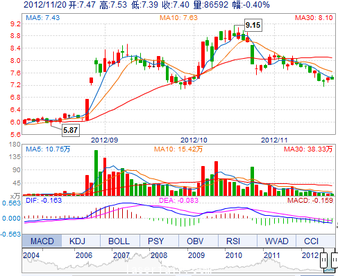 今 開: 7.47 成交量: 86591手 振 幅: 1.88% 最 高: 7.53 成交額: 6456.09萬 換手率: 0.92% 最 低: 7.39 總市值: 77.29億 市凈率: 2.39 昨 收: 7.43 流通市值...