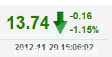 今 開: 13.91 成交量: 7347手 振 幅: 2.88%