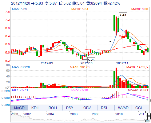 最 低: 5.62 總市值: 24.64億 市凈率: 1.83
