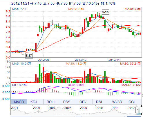 今 開: 7.40 成交量: 105133手 振 幅: 3.38% 最 高: 7.55 成交額: 7832.37萬 換手率: 1.11% 最 低: 7.30 總市值: 78.64億 市凈率: 2.43 昨 收: 7.40 流通市值...