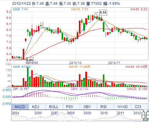 今 開: 7.49 成交量: 77002手 振 幅: 1.73% 最 高: 7.49 成交額: 5707.14萬 換手率: 0.81% 最 低: 7.36 總市值: 77.08億 市凈率: 2.38 昨 收: 7.53 流通市值...
