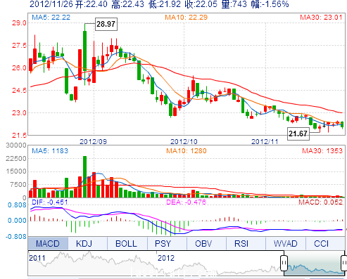 | 最 低: | 21.92 | 總市值: | 7.72億 | 市凈率: | 2.69 |