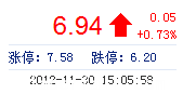 | 昨 收: | 6.89 | 流通市值: | 65.65億 | 市盈率TTM: | 11.39 |