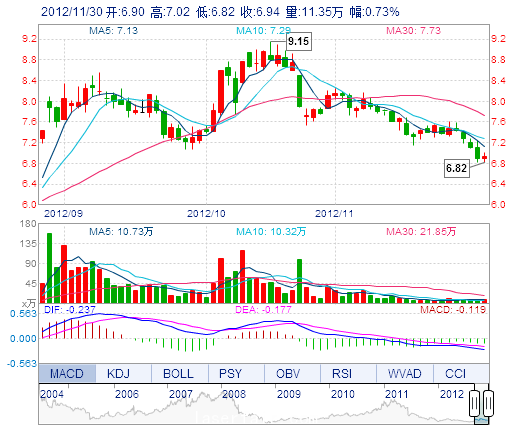 今 開(kāi): 6.90 成交量: 11.35萬(wàn)手 振 幅: 2.90% 最 高: 7.02 成交額: 7853.37萬(wàn)元 換手率: 1.20% 最 低: 6.82 總市值: 72.48億 市凈率: 2.24 昨 收: 6.89 流通...
