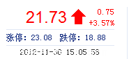 | 今 開: | 20.80 | 成交量: | 2442手 | 振 幅: | 4.53% |