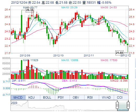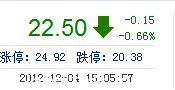 | 今 開: | 22.64 | 成交量: | 1.80萬手 | 振 幅: | 4.42% |