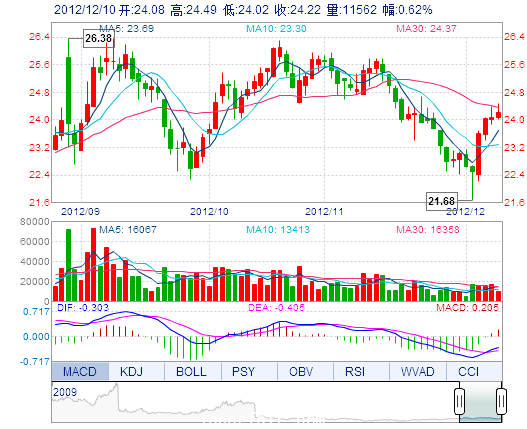 今 開: 24.08 成交量: 1.16萬手 振 幅: 1.95% 最 高: 24.49 成交額: 2799.70萬元 換手率: 0.62% 最 低: 24.02 總市值: 72.09億 市凈率: 5.53 昨 收: 24.07 流...