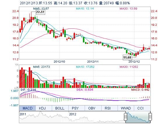 今開: 13.55 成交量: 2.07萬手 振幅: 6.09% 最高: 14.20 成交額: 2861.43萬元 換手率: 6.23% 最低: 13.37 總市值: 9.22億 市凈率: 3.00 昨收: 13.64 流通市值...
