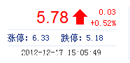 | 昨 收: | 5.75 | 流通市值: | 15.89億 | 市盈率TTM: | 32.01 |