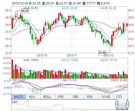 | 今 開: | 24.65 | 成交量: | 1.78萬手 | 振 幅: | 2.15% |