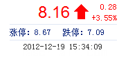 | 昨 收: | 7.88 | 流通市值: | 77.19億 | 市盈率TTM: | 13.40 |