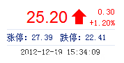 | 最 高: | 25.40 | 成交額: | 5525.41萬元 | 換手率: | 1.17% |