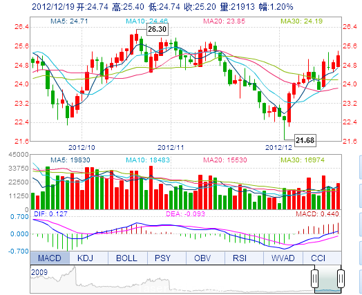 今 開: 24.74 成交量: 2.19萬手 振 幅: 2.65% 最 高: 25.40 成交額: 5525.41萬元 換手率: 1.17% 最 低: 24.74 總市值: 75.01億 市凈率: 5.75 昨 收: 24.90 流...