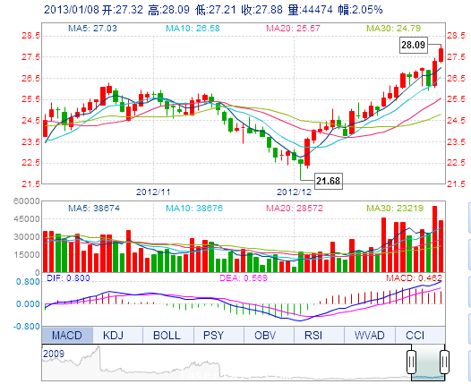 | 最 高: | 28.09 | 成交額: | 1.23億元 | 換手率: | 2.37% |