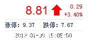 今 開: 8.49 成交量: 51.37萬手 振 幅: 6.46% 最 高: 9.00 成交額: 4.53億元 換手率: 5.43% 最 低: 8.45 總市值: 92.01億 市凈率: 2.84 昨 收: 8.52 流通市值...