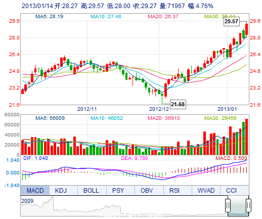 | 最 高: | 29.57 | 成交額: | 2.09億元 | 換手率: | 2.61% |