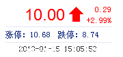 今 開: 9.80 成交量: 79.56萬手 振 幅: 9.58% 最 高: 10.58 成交額: 8.07億元 換手率: 8.41% 最 低: 9.65 總市值: 104.44億 市凈率: 3.23 昨 收: 9.71 流通市...