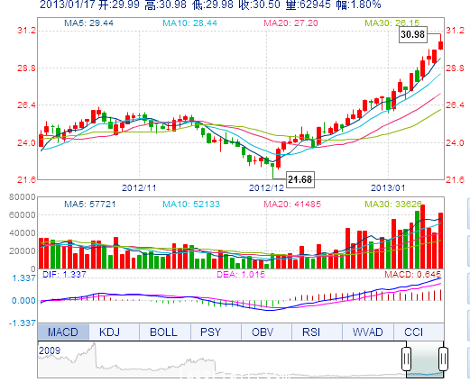 | 最 低: | 29.98 | 總市值: | 90.79億 | 市凈率: | 6.96 |