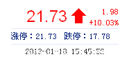 | 最 高: | 21.73 | 成交額: | 1.46億元 | 換手率: | 20.84% |