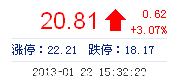| 今 開: | 20.87 | 成交量: | 5.64萬手 | 振 幅: | 8.42% |