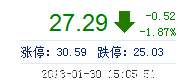 | 最 高: | 27.95 | 成交額: | 1657.40萬(wàn)元 | 換手率: | 5.77% |