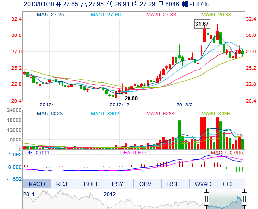 | 最 低: | 26.91 | 總市值: | 9.55億 | 市凈率: | 3.33 |
