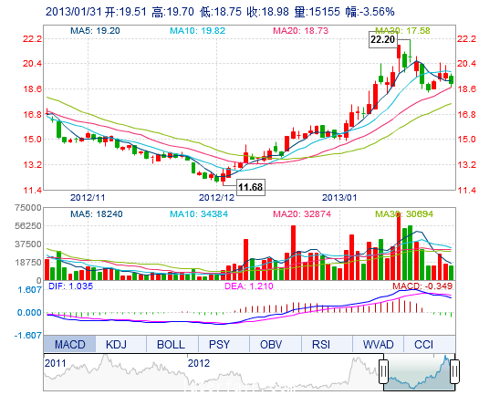 | 最 低: | 18.75 | 總市值: | 12.72億 | 市凈率: | 4.14 |