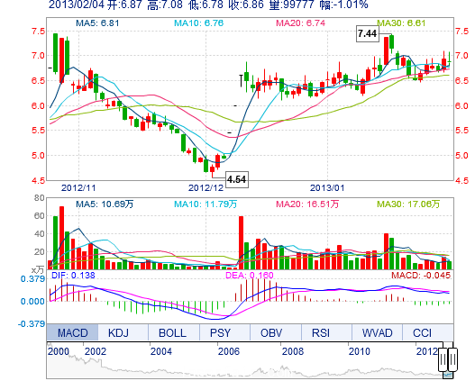 | 最 高: | 7.08 | 成交額: | 6884.45萬(wàn)元 | 換手率: | 2.28% |