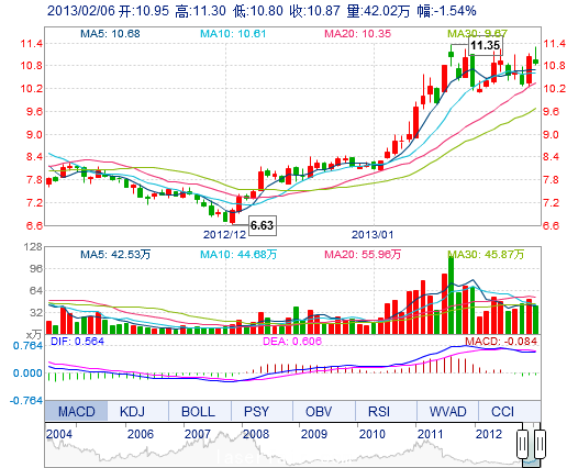 | 最 高: | 11.30 | 成交額: | 4.63億元 | 換手率: | 4.44% |