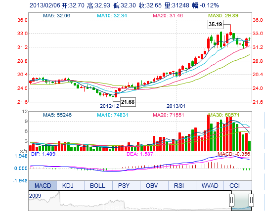 | 今 開: | 32.70 | 成交量: | 3.12萬(wàn)手 | 振 幅: | 1.93% |