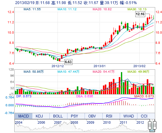 | 最 低: | 11.52 | 總市值: | 121.88億 | 市凈率: | 3.76 |