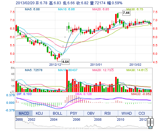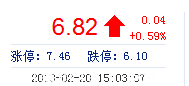 | 今 開: | 6.78 | 成交量: | 7.22萬手 | 振 幅: | 2.51% |